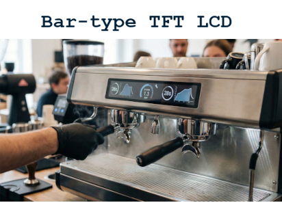 Build the "Barista Control Strip" with Topway's HMT088ATA-D. A 1920x480 Bar-Type Smart LCD bringing industrial reliability to low-profile espresso machines.